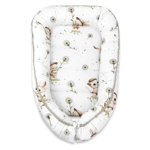 Hniezdočko, kokon pre bábätko, bavlna, Kocúrik a púpava - biela